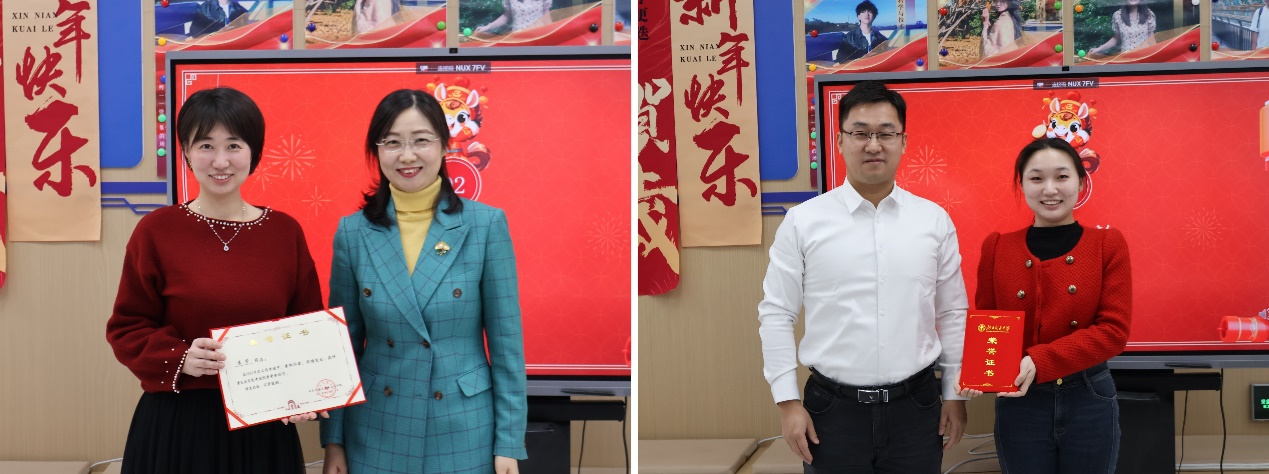 在颁奖表彰环节,李涛为2025年度学院优秀工作者颁发了荣誉证书,邓涛为学院年度奖教金获得者颁发了证书,表彰和感谢他们在岗位上的深耕细作与突出贡献。